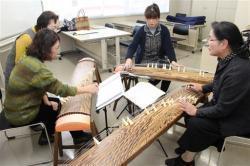 講座では、十三絃の箏以外に、三味線を指す「三絃」と17本の絃がある箏「十七絃」も教えている。練習曲は古典曲から「ふるさと」「赤とんぼ」などの唱歌まで多岐にわたり、年数回の発表に向け、音の強弱、テンポ、調子の合わせ方などを個々のペースで上達させていく。