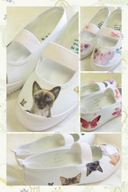 話題の上履きにデコパージュレッスンも含め、お好きな物に張り付けるフリーレッスン、基礎から学べるカリキュラムコースが選べます