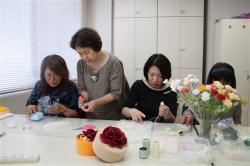 講座ではリボンを使ったフラワーアートにも挑戦できる。本物そっくりのバラやユリは、色や素材の違うリボンを貼り合わせ、コテで熱を加えて形を調整して作る。受講歴8年の栗栖智美さん(高岡市)は「自分だけのアレンジができることが楽しい」と話す。技術を極めた受講者の中には、展覧会で作品を発表する人もいる。