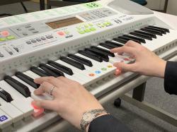 これまでに楽器を弾いたことがないような初心者やギターの経験者など一人一人のレベルは異なるが、鍵盤が光って弾く場所を教えてくれる「光ナビゲーション」の機能を使えば、楽譜を読めなくても演奏の楽しさを感じられる。練習中はそれぞれがヘッドホンを使用しており、周りの音を気にせず、自らの課題に集中して取り組むことができる。