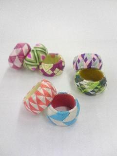 色鮮やかな絹糸が綾なす模様の「加賀ゆびぬき」を自分好みの色合わせでつくります。きれいに仕上がるポイントなどを丁寧に教えます。