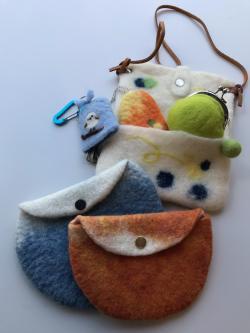 ふわふわでカラフルな羊毛を石鹸水を使ってフェルト化する技法を使って、ポーチやバッグ、スリッパなど、実用的に使える雑貨を作ります。作りたい作品のご要望にも対応します。