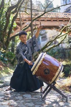 能楽や歌舞伎で主に使われ、甲高い音色が魅力の締太鼓と、全身を使って打ち鳴らす和太鼓のどちらも学べます。
