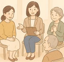 この講座では、毎回ちょっとしたテーマ(人づきあいのコツ、気分の切り替え方、気持ちの整え方など)に沿って、やさしいお話や簡単なワークを行いながら、参加者同士でおしゃべりを楽しみます。