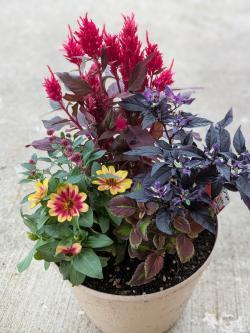 寄せ植えはわずかなスペースでも楽しめます。見るたびにときめくような寄せ植えを玄関先に飾って印象をアップさせましょう!トウガラシ、セロシア、アキランサス、ジニアを使って、ハロウィンの寄せ植えを楽しみましょう。