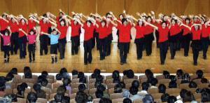リズムダンスは健康ダンスのことで、だれにでも親しみやすい流行の曲に、簡単な振り付けをしたものです。