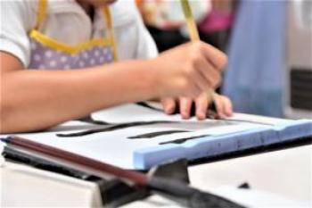 イオンモールとなみ教室の「こども書道」は、小学生から中学生までの受講生が書道を楽しみながら上達を目指している。